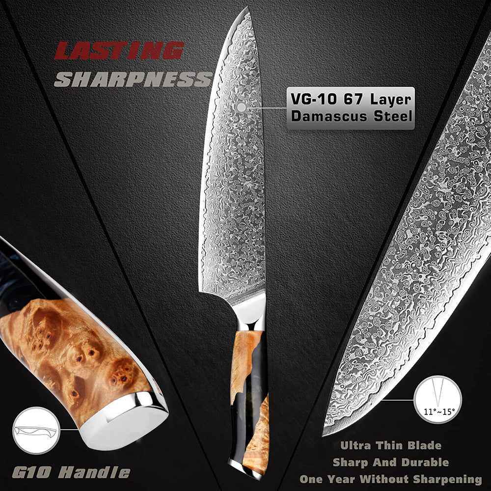 Damascus Steel Chef Knife - Professional Kitchen Knife for Chefs